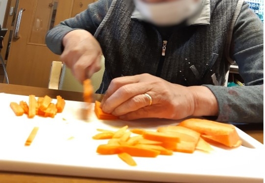 - お食事やその他の家事などは一緒に行い、食べる楽しみや役割がある生活を過ごせる様に支援します
